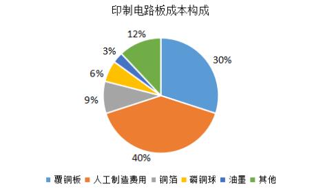 從印制電路板的成本構成看,除人工制造費用外,覆銅板占比約30%,銅箔、磷銅球等專用材料占比為15%,油墨占比為3%,其他化學材料占比為12%。