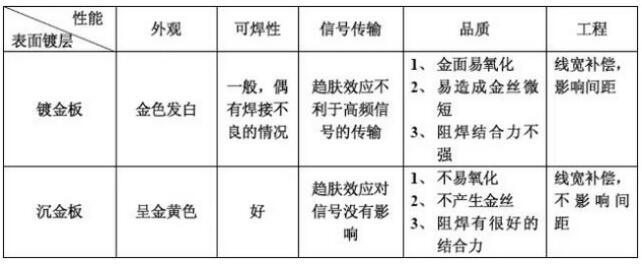 鍍金板的其它缺點在沉金板與鍍金板的區(qū)別表中已列出。