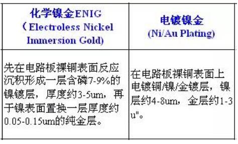 3、化學(xué)鎳金板(沉金)與電鍍鎳金板(鍍金)的機理區(qū)別參閱下表: