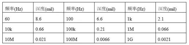 根據(jù)計算,趨膚深度與頻率有關(guān):