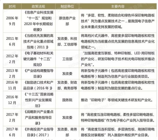 鑒于PCB在電子信息產(chǎn)業(yè)中的重要地位,近年來我國政府和行業(yè)主管部門推出了一系列相關(guān)產(chǎn)業(yè)政策和法律法規(guī),具體如下: