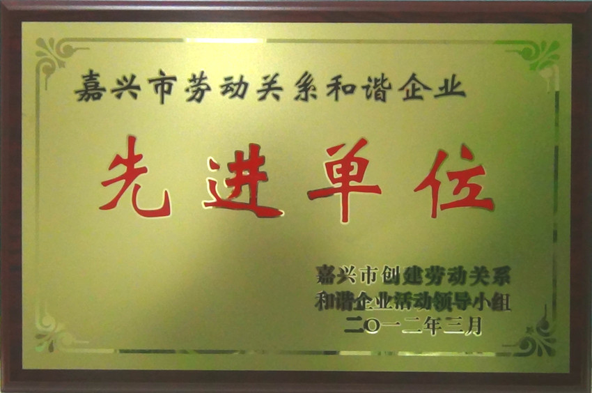 喜訊:公司榮獲二O一一年度“嘉興市勞動關系和諧企業先進單位”榮譽稱號