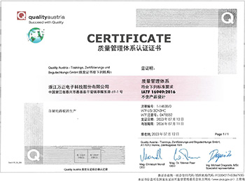 航空質(zhì)量管理體系認(rèn)證證書AS9100D